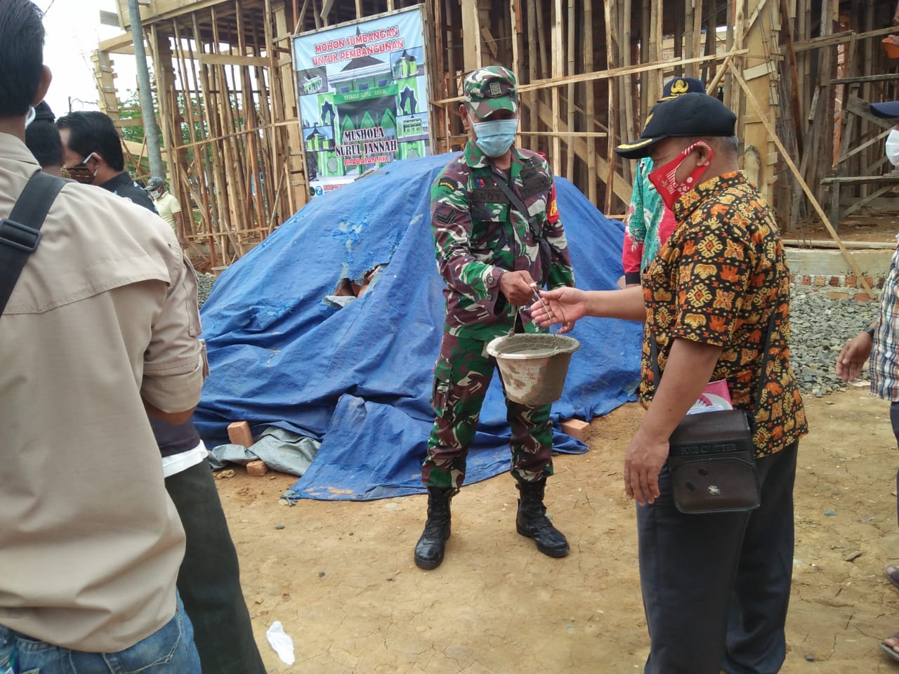 KODIM 0426/TB- MESUJI- Babinsa Desa Mekar Jaya, Kecamatan Tanjung Raya, Koramil 426-01 Mesuji, Kabupaten Mesuji, Sertu Roy Martin mengomandoi masyarakat untuk sama sama memperbaiki salah satu mushola yang ada diwilayah binaannya, Minggu, 1 November 2020.
