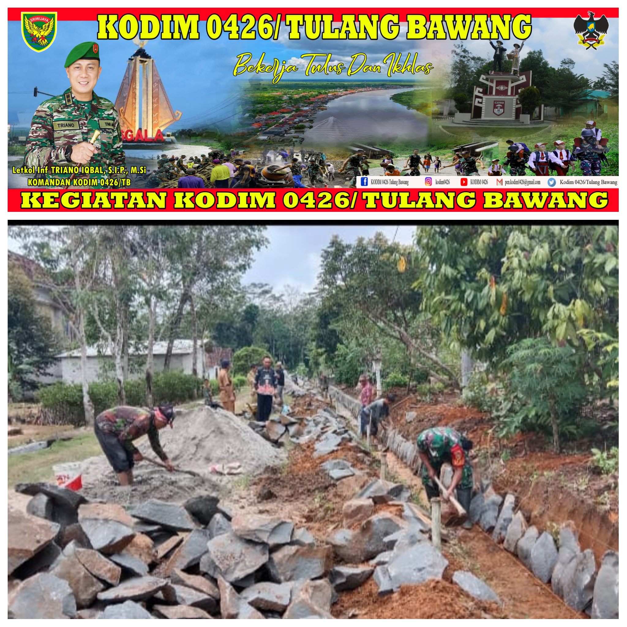 KODIM 0426/TB- Gedung Aji (Tulang Bawang) — Babinsa Koramil 426-05 Penawar Aji, Kodim 0426 Tulang Bawang, Sertu Siswanto bersama masyarakat bergotong-royong melaksanakan pembuatan parit Dikampung Aji Jaya KNPI, Kecamatan Gedung Aji, Kabupaten Tulang Bawang, Minggu 19 Maret 2023.