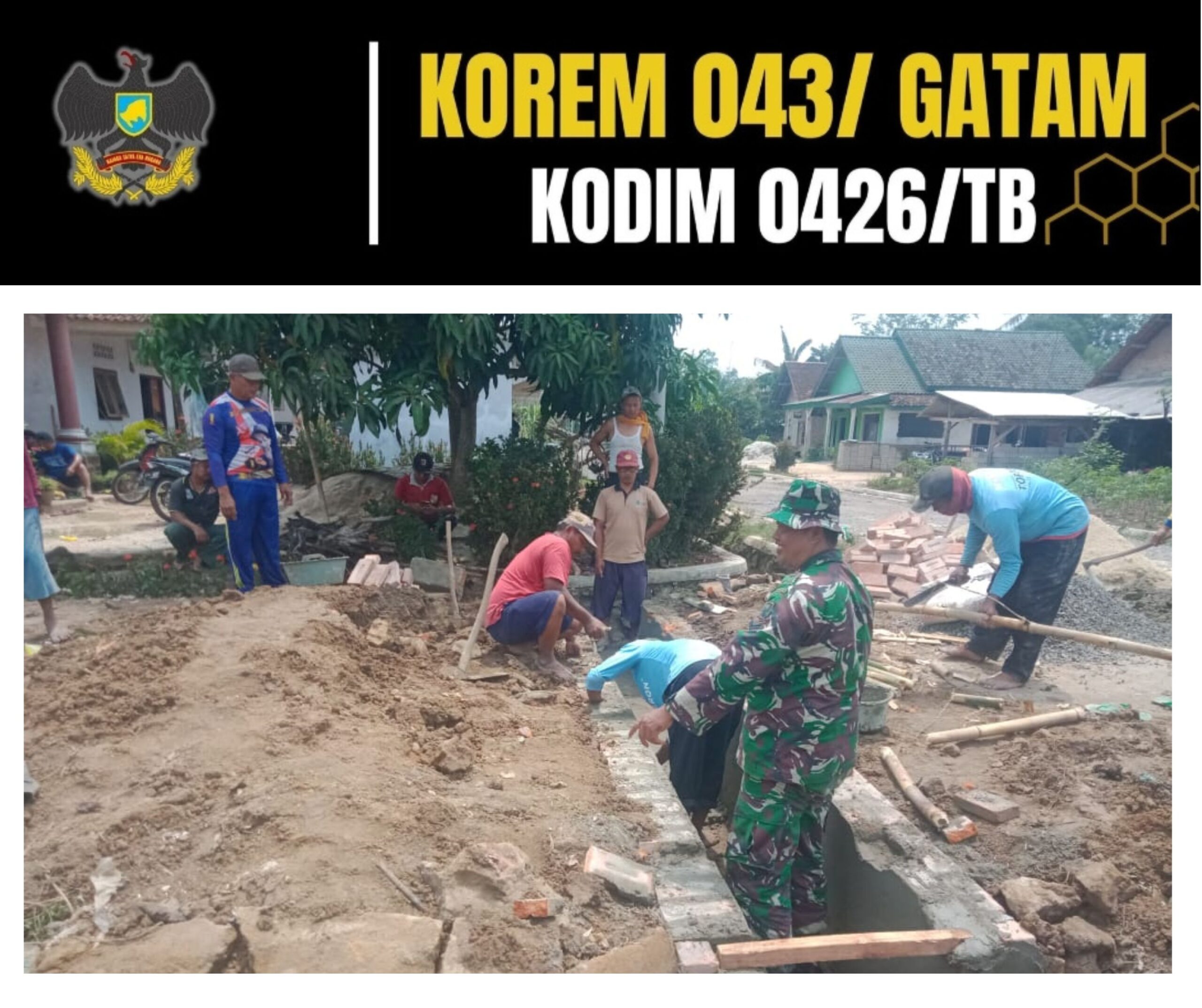 KODIM 0426/TB – – Meraksa Aji, Tulang Bawang — Babinsa Koramil 426-05/PA, Kodim 0426 Tulang Bawang, Sertu Sukardi, bersama masyarakat melaksanakan kegiatan Karya Bhakti dalam pembuatan talud di Kampung Marga Jaya, Kecamatan Meraksa Aji, Kabupaten Tulang Bawang, pada Jumat (27/03/2026).