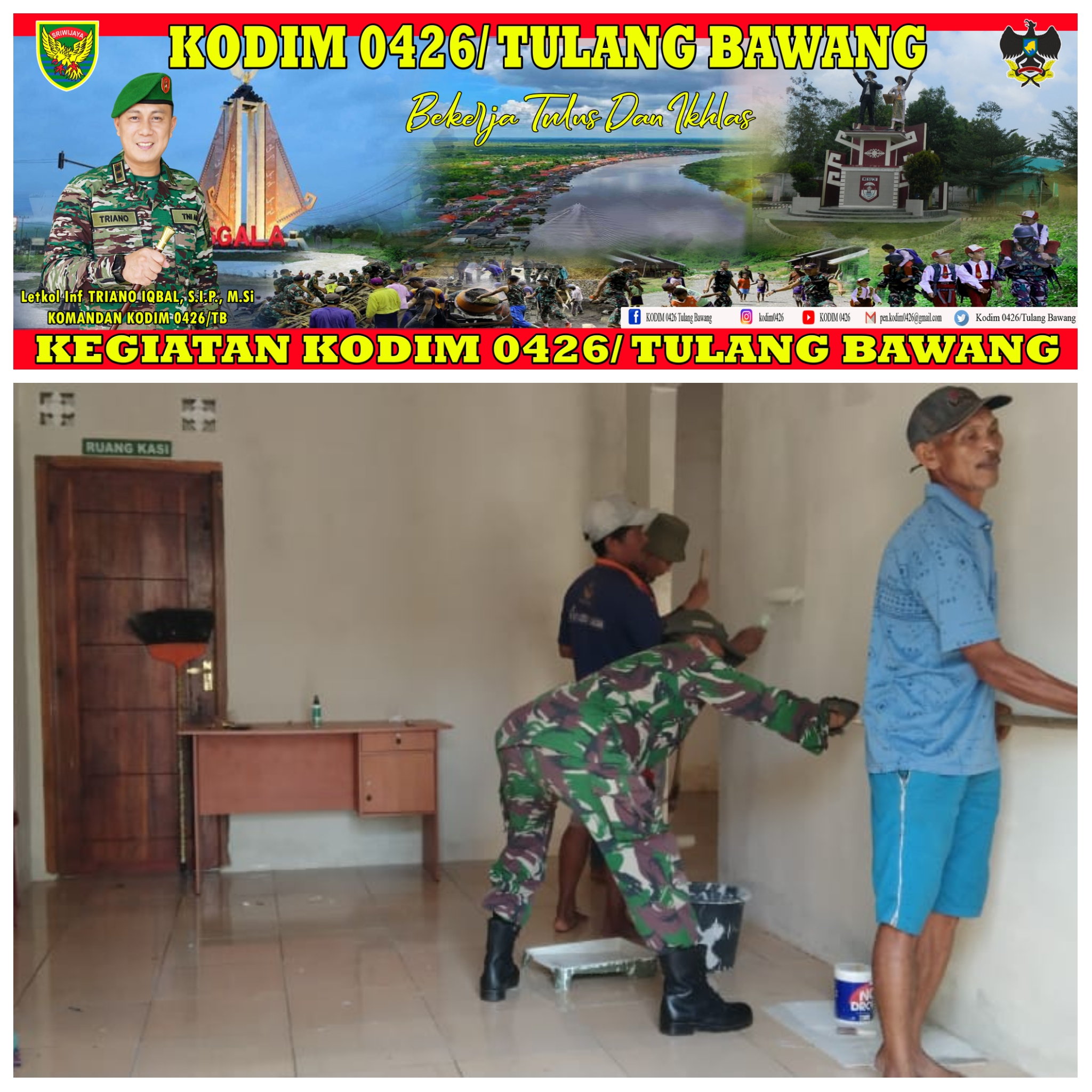 “Jangan cuek dengan keadaan kantor, kalo rusak, perbaiki, kalo kotor, bersihkan. Jangan diam saja, gotong royong seperti ini juga sangat baik untuk menjaga kekompakan,” jelas Sumarno.