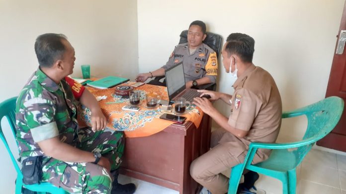 KODIM 0426/TB- Sertu Supriono Babinsa Tunggal Warga, Kecamatan Banjar Agung, Kabupaten Tulang Bawang bersama Babinkamtibmas ajak perangkat kampung untuk sama sama mengajak masyarakat patuhi protokol kesehatan (Prokes).