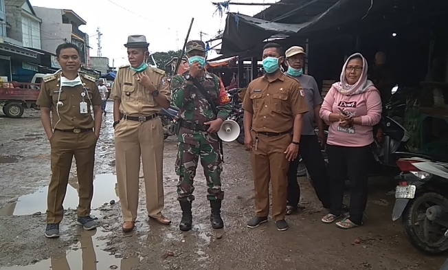Sertu Supriyono Gaungkan Himbauan Cegah Virus Corona di Pasar Unit 2 Tuba.