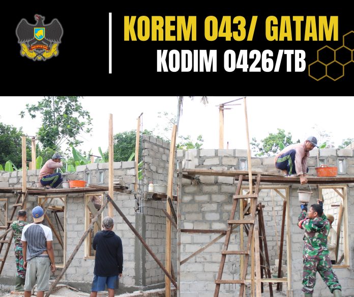 KODIM 0426/TB – – Banjar Margo (Tulang Bawang) — Wujud nyata sinergi antara TNI dan masyarakat kembali terlihat. Dua anggota Babinsa dari Koramil 426-04 Banjar Agung, Kodim 0426 Tulang Bawang, yakni Sertu Hutoyo dan Serda Junadi, melaksanakan karya bakti membantu pembangunan rumah milik Bapak Rusman, warga Kampung Bujuk Agung, Kecamatan Banjar Margo, Kabupaten Tulang, pada Rabu 21 Oktober 2025.