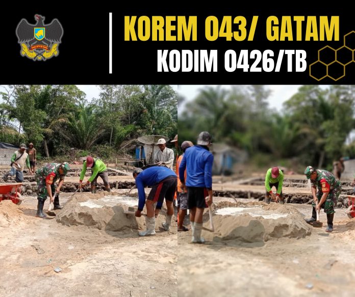 KODIM 0426/TB – – Gedung Aji (Tulang Bawang) — Dalam rangka memperkuat sinergi antara TNI dan masyarakat, Babinsa Koramil 426-05/PA Kodim 0426 Tulang Bawang, Sertu Siswanto, melaksanakan karya bakti membantu pembangunan rumah milik Bapak Rasiman, warga RT 03 Kampung Aji Jaya KNPI, Kecamatan Gedung Aji, pada Selasa, 14 Oktober 2025.