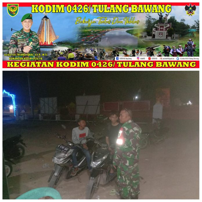 KODIM 0426/TB- Rawajitu Selatan (Tulang Bawang) — Babinsa Koramil 426-03 Rawajitu Kodim 0426 Tulang Bawang, berupaya terus meminimalisir dan mencegah terjadinya aksi balapan liar di wilayah, Didesa Gedung Karya Jitu, Kecamatan Rawajitu Selatan, Kabupaten Tulang Bawang, Sabtu 19 Agustus 2023.