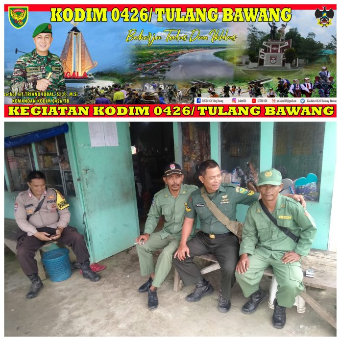 KODIM 0426/TB- Mesuji Timur (Mesuji) — Untuk mewujudkan suasana keamanan, ketertiban dan kententraman masyarakat di wilayah binaan, Sertu Margono Babinsa Koramil 426-01/SP Kodim 0426 Tulang Bawang, dan Bhabinkamtibmas selalu bersinergi dengan seluruh elemen masyarakat.