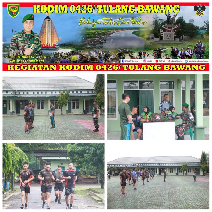 KODIM 0426/TB-Menggala (Tulang Bawang) — Dalam rangka menjaga kesehatan dan membina kebugaran fisik agar tetap prima, Prajurit Kodim 0426 Tulang Bawang melaksanakan kegiatan rutin lari aerobik guna meningkatkan jasmani personel. Sebelum kegiatan lari aerobik dimulai, terlebih dahulu dilaksanakan apel pengecekan personel yang dipimpim oleh Pasandi Kodim 0426 Tuba Letda Inf Sudirman, Kamis 01 Februari 2024.
