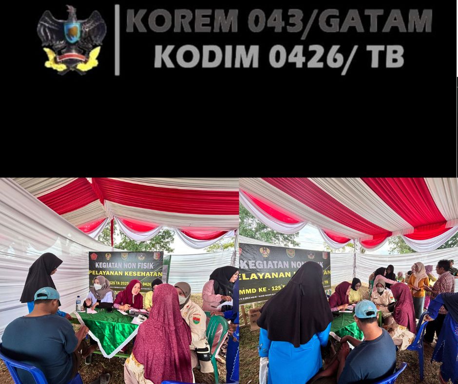 KODIM 0426/TB – – Tulang Bawang — Penutupan TNI Manunggal Membangun Desa (TMMD) ke-125 Kodim 0426/Tulang Bawang yang digelar di Lapangan Kampung Moris Jaya, Kecamatan Banjar Agung, Kamis (21/8/2025), tak hanya ditandai dengan upacara resmi. Dalam kesempatan tersebut, Satgas TMMD juga menghadirkan pelayanan kesehatan gratis bagi masyarakat setempat.