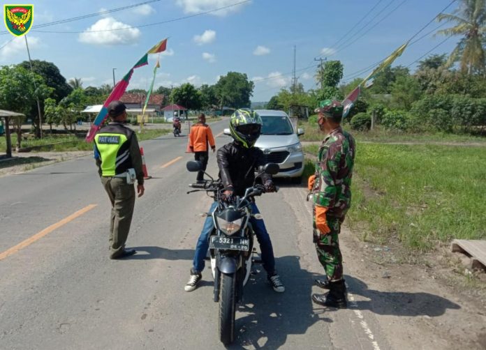 Inilah yang bisa kita lihat dari anggota Kodim 0426 Tulang Bawang di pos- pos pencegahan penularan Coronavirus disease 2020 (Covid-19) yang berada di Kabupaten Tulang Bawang dan Mesuji, selalu siap melaksanakan tugas walaupun hari ini ( Minggu, 24-05-2020) adalah hari raya Idul Fitri 1441 H, yang seharusnya bisa berkumpul bersilahturahmi dengan keluarga dan tetangga lingkungan, tetapi demi mengamankan warga masyarakat dari penularan Covid-19, kepentingan keluarga dinomor duakan.